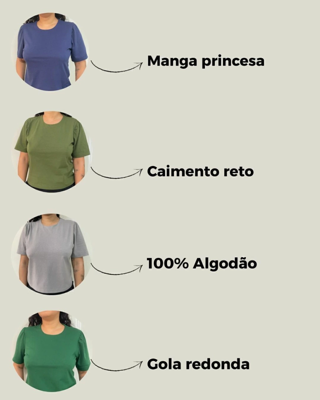 Nossa T-shirt é adição perfeita para o guarda-roupa da mulher moderna. Composta por 100% algodão, ela garante conforto e leveza para o uso diário seja jeans, saias ou até mesmo shorts.